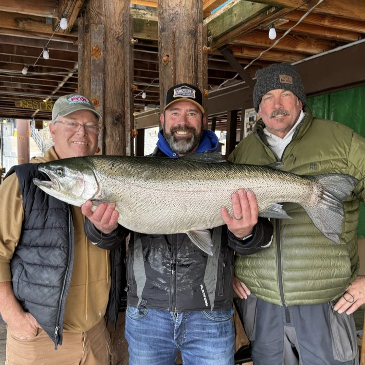 Kirk Jjeltness, Craig O’Neal and Tim McIntosh, the Derby team for the LPOIC Thanksgiving Derby.. Fish was landed 2:30 pm on the final day.
